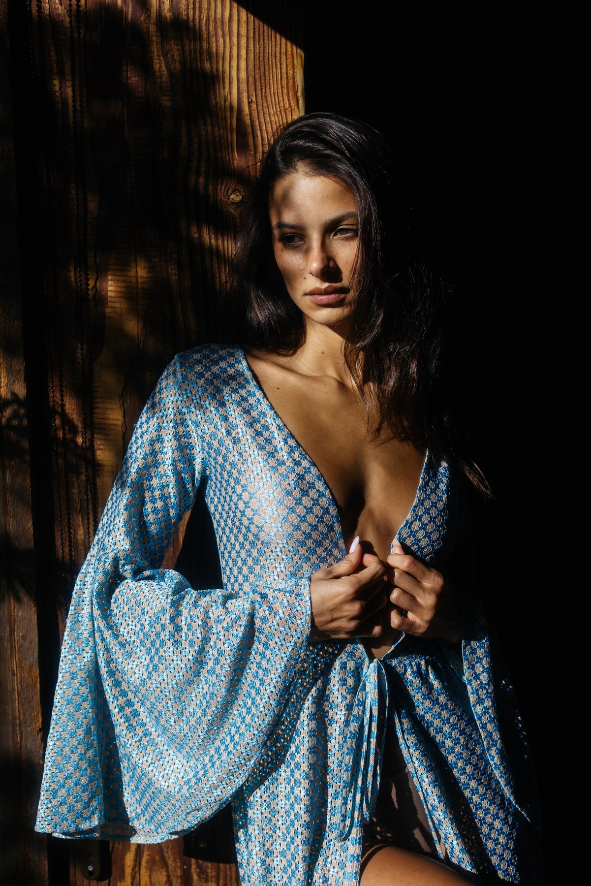 A vision of elegance and allure, the Aurora Robe is crafted from the finest Italian silk fabrics in mesmerizing shades of blue and gold. Its sheer design leaves just enough to the imagination, flowing effortlessly from beach to bedroom with undeniable sophistication.