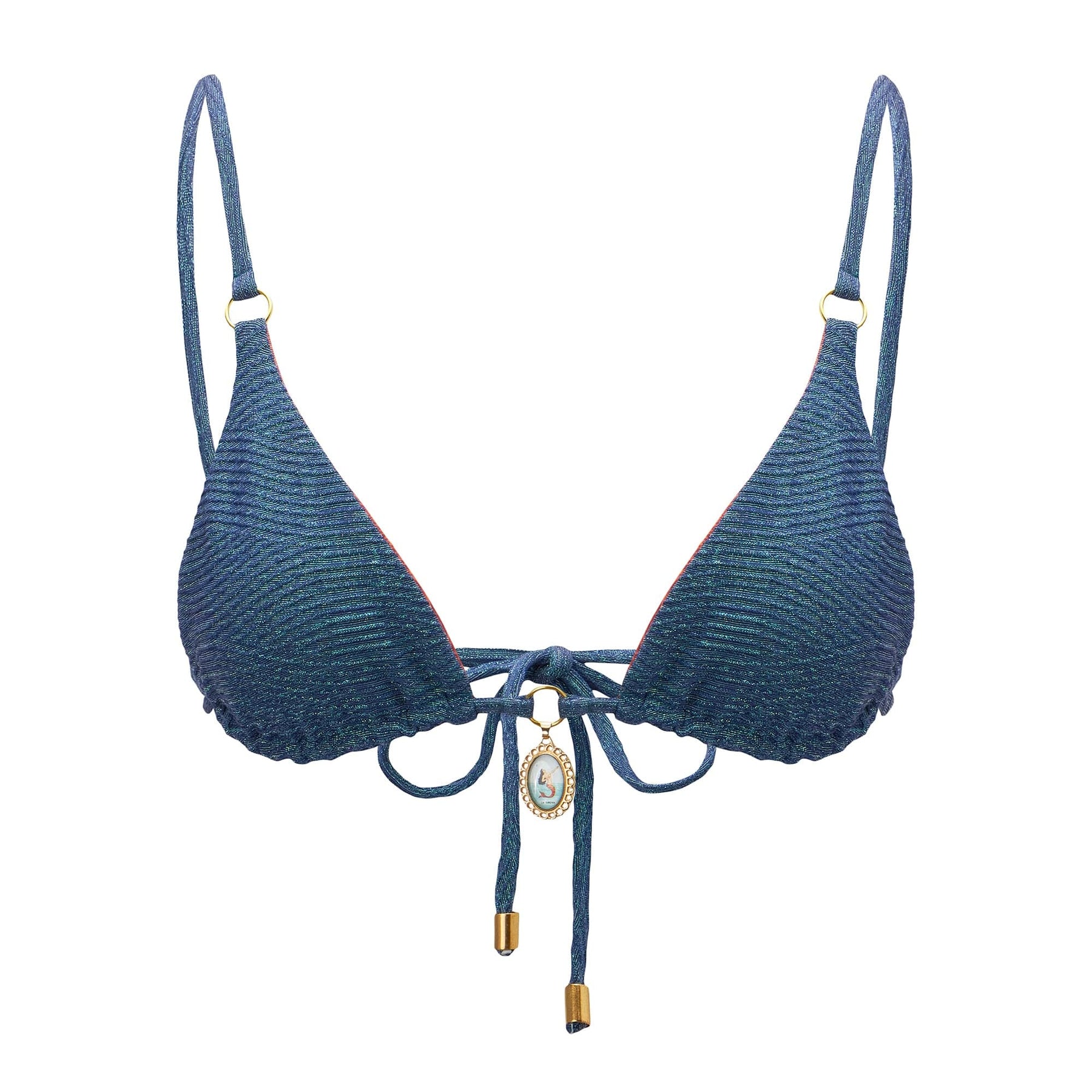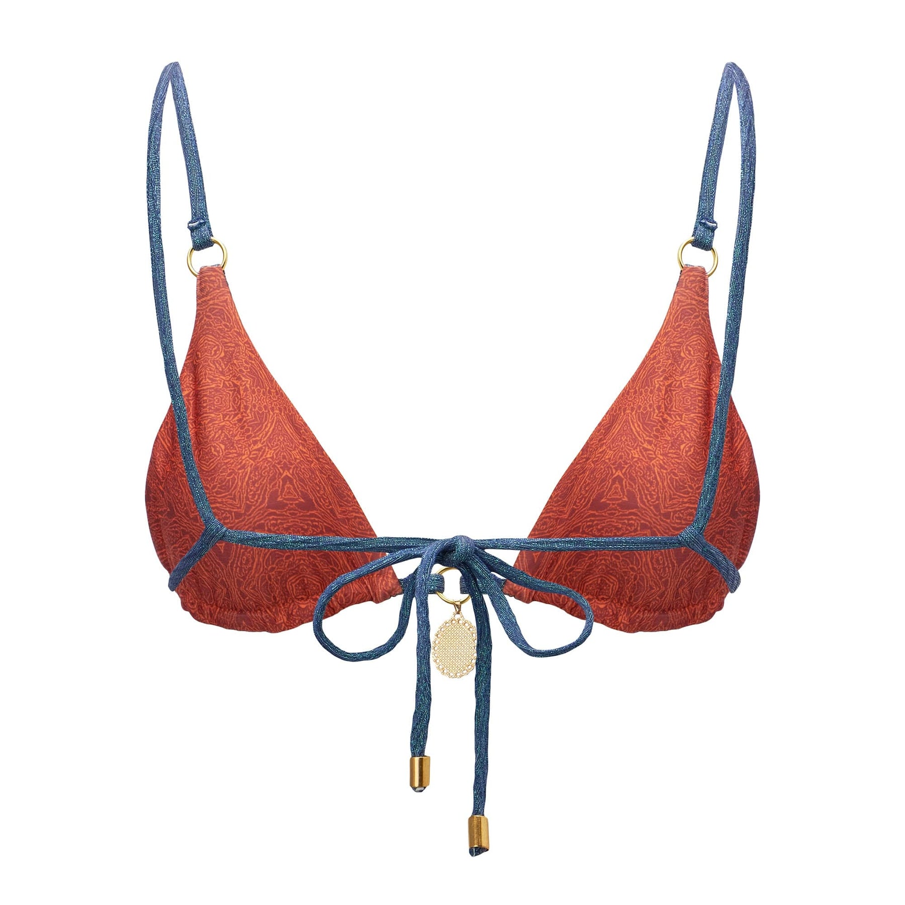 An elevated classic with a gorgeous gold ring and metal-tipped tie embellishments, the Triangle top is anything but basic. Elegant with a hint of a seductive edge, the design is beautiful in its simplicity and effortlessly chic.